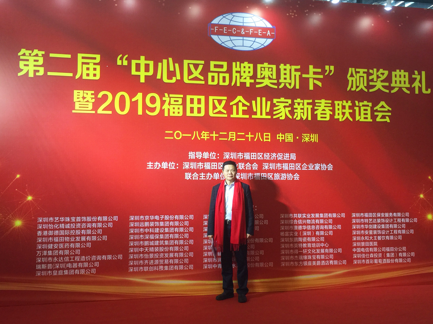12月28日,由深圳市福田區經濟促進局指導,深圳市福田區企業聯合會、深圳市福田區企業家協會、深圳市福田區旅游協會共同主辦的第二屆中心區品牌奧斯卡頒獎盛典在深圳會展中心隆重舉行。中科建設集團憑借良好的品牌美譽度榮登中心區成長潛力品牌榜榜首,董事長葉國標受邀參加此次盛典。